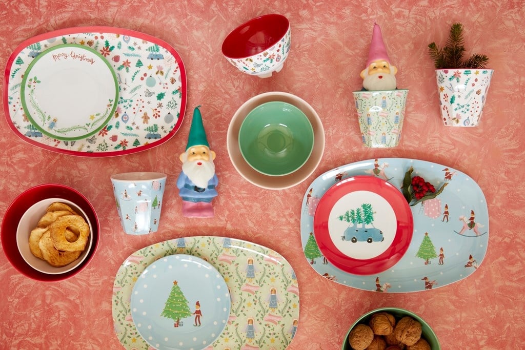 Mooie melamine kerstkom in de serie All over Xmas met rode binnenkant.