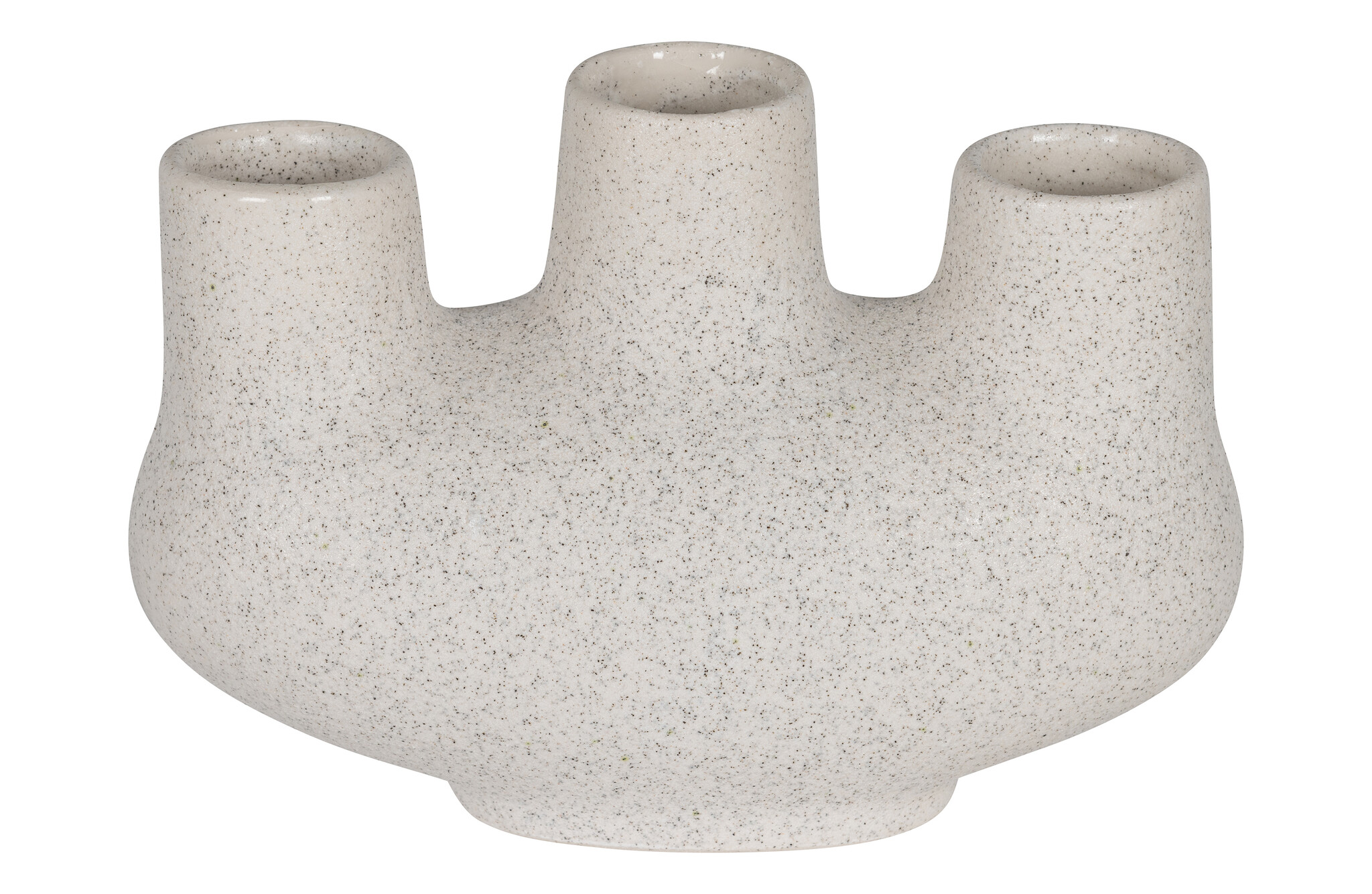 De trendvolle Rosie vaas komt uit de collectie van het Nederlandse interieurmerk WOOOD. De Rosie heeft een gladde textuur en is afgewerkt in een kalk witte tint. De Rosie vaas heeft drie openingen en is volledig hol binnenin.